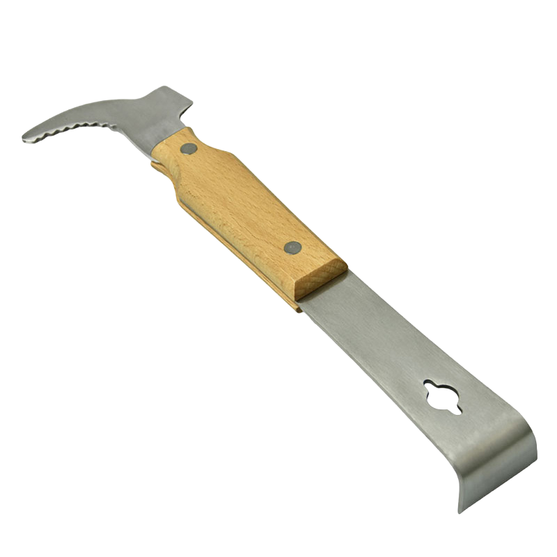 - Dva radna kraja: Jedan kraj je ravan, savijen pod pravim uglom i oštar, što omogućava lako uklanjanje propolisa i voska sa nastavaka i ramova. Drugi kraj je zakrivljen i nazubljen, olakšavajući odvajanje nastavaka i vađenje ramova.