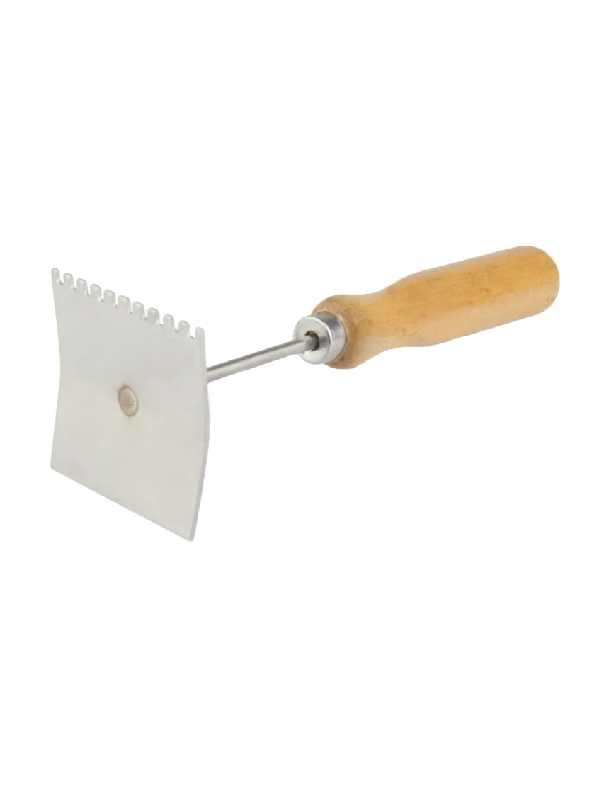 Materijal: Drvena drška i čelična radna površina sa dve funkcionalne strane.