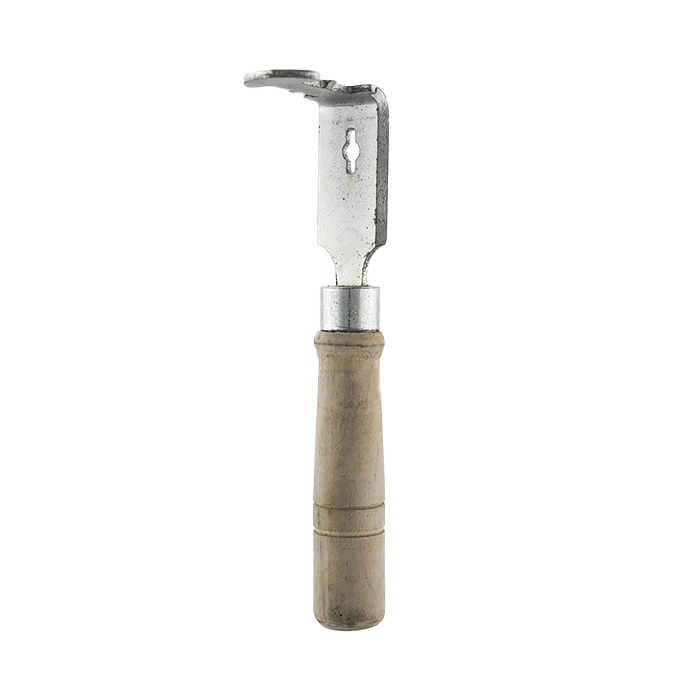 Materijal: Drvena drška i čelični deo zakrivljen pod uglom od 90 stepeni.